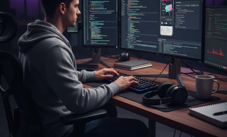 Tim developer kami ahli dalam menggunakan teknologi native dan cross-platform (misalnya: Swift, Kotlin, React Native, Flutter) untuk membangun aplikasi yang cepat, stabil, dan aman. Kami memastikan kode bersih dan efisien, serta melakukan pengujian menyeluruh (Testing) untuk menjamin aplikasi berfungsi sempurna di berbagai perangkat dan sistem operasi (iOS & Android). Kami siap mengintegrasikan API, database yang scalable, dan fitur canggih lainnya.