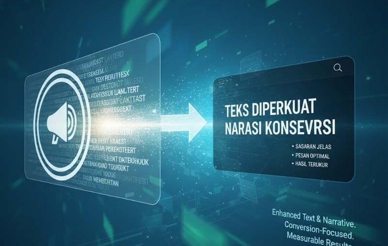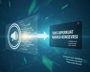 Setiap teks dan narasi di situs Anda kami perkuat (enhanced) dan susun agar selaras dengan tujuan konversi perusahaan Anda. Kata-kata yang tepat untuk hasil yang terukur.