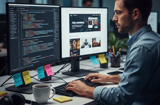 Setelah desain final, tim developer kami mengubahnya menjadi website yang berfungsi penuh. Kami menggunakan teknologi dan platform terbaru (misalnya: WordPress, Laravel, React) untuk memastikan website Anda cepat, aman, skalabel, dan mudah dikelola. Kami menangani semua aspek teknis, mulai dari struktur backend, integrasi fitur, hingga optimasi loading speed, sehingga website Anda siap go-live tanpa hambatan.